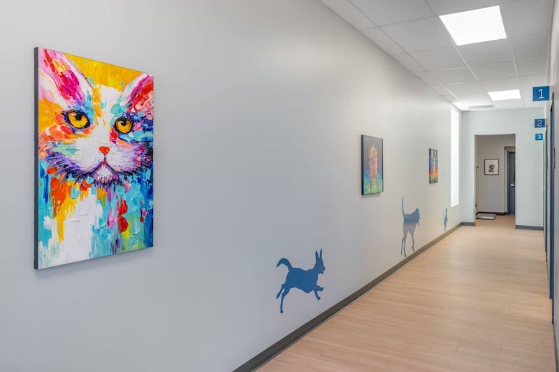Our hospital features modern, open spaces, with bright elements to support a fear-free, comforting environment for our furry friends. We're conveniently located at 12317 Old Lagrange Rd.