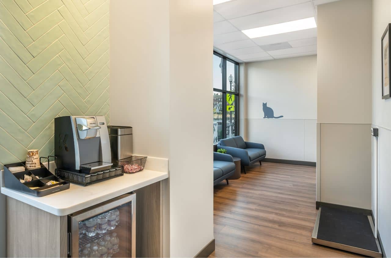 Our hospital features modern, open spaces, with bright elements to support a fear-free, comforting environment for our furry friends. We're conveniently located at 7150 12 St. NW Suite 201.